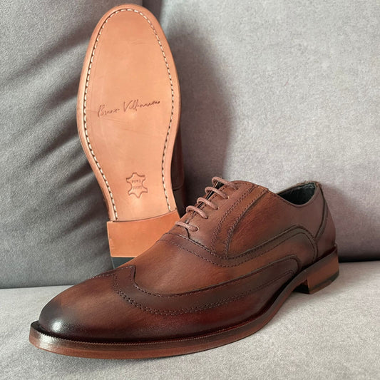 Oxford Madera muñequeado piel y suela de cuero cosida Mod 13001